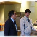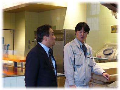 今回は、建築事業部の「もりもと南郷通店新築工事」へ現場訪問に行かれるということで、同行させていただきました。 社長は現場に着くと早速現場担当者の松本さんを相手に質問の嵐、建物内を行ったり来たり、戸という戸は全て開けて部屋の隅々までチェック。「いつもこんなに隅々まで見て回るのですか?」と尋ねると「見たいからね」の一言。細かくチェックするというよりは、純粋に興味があって、見て回るのが楽しいからだそうです。「もりもと南郷通店」は札幌市白石区南郷通7丁目に建設中でほぼ完成に近い状態でした。 丁度社内検査を実施する日だったようで、設計会社のご担当の方と建築事業部の志田部長と安川次長が厳しく検査をされていました。