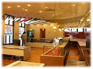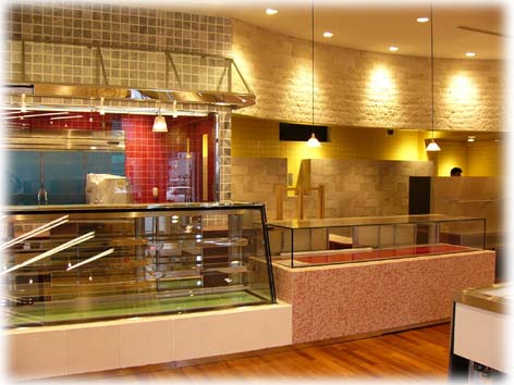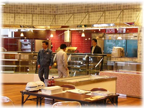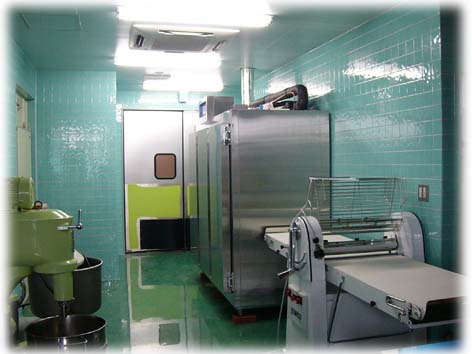 その様な状況の合間をぬって建物を案内していただきましたが、自然の石を沢山使いとても重みがあり洒落た建物となっており、店内や工場はカラフルな内装で明るく、思わず楽しくなるような感じに仕上げられていて、店内のショーケースに沢山の和洋菓子類が陳列される様を想像すると、思わず生唾が出てしまいました。 グランドオープンは平成15年10月13日の予定です。皆様には是非ともお立ち寄りをいただき、美味しい和洋菓子をお買い求めいただきたいと思います。また、その時 には建物もじっくり見て頂ければ、担当した職員も技術者冥利に尽き大変喜ぶものと思われます。