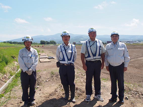 本工事と二次整備、客土工の土取場の整備など工区が離れていることや、妹背牛地区区画整理事業が最終年度になること、地域特性上のルール等もあり、施工管理には苦慮しているそうですが、天候に恵まれ進捗は順調とのことです。