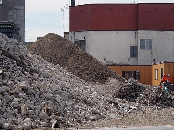 - 手前:解体で出たコンクリート殻