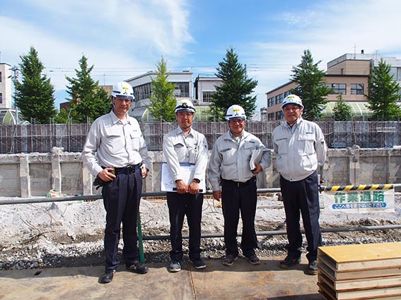 最後に向かったのは今回唯一の建築現場で「滝川再開発金融棟」です。田端本堂カンパニー・笹木産業との共同企業体で、旧滝川名店ビルを解体し、北門信用金庫が本店として利用するオフィスビルを新築する、建築物等整備事業の第2期工事です。