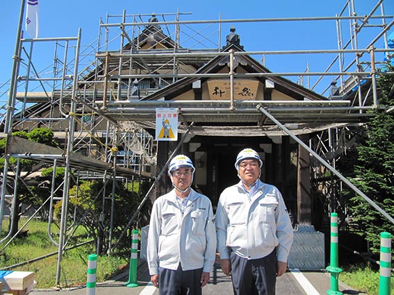 - 左から佐藤係長、中山社長(撮影場所:女湯の露天風呂)