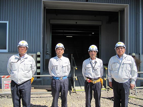 - 左から瀬戸工事課長、田中主任、吉田係長、中山社長
