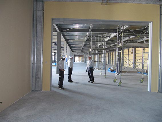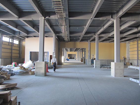 こちらの建物は2階建てになっており、粉などを保管するため重い荷物を2階へ運べる大きなエレベーターがありました。今月中に竣工する予定なのであと少しだと思いますが、最後まで怪我などには気をつけて頑張ってください。お忙しいところ時間を割いて頂き、本当にありがとうございました。