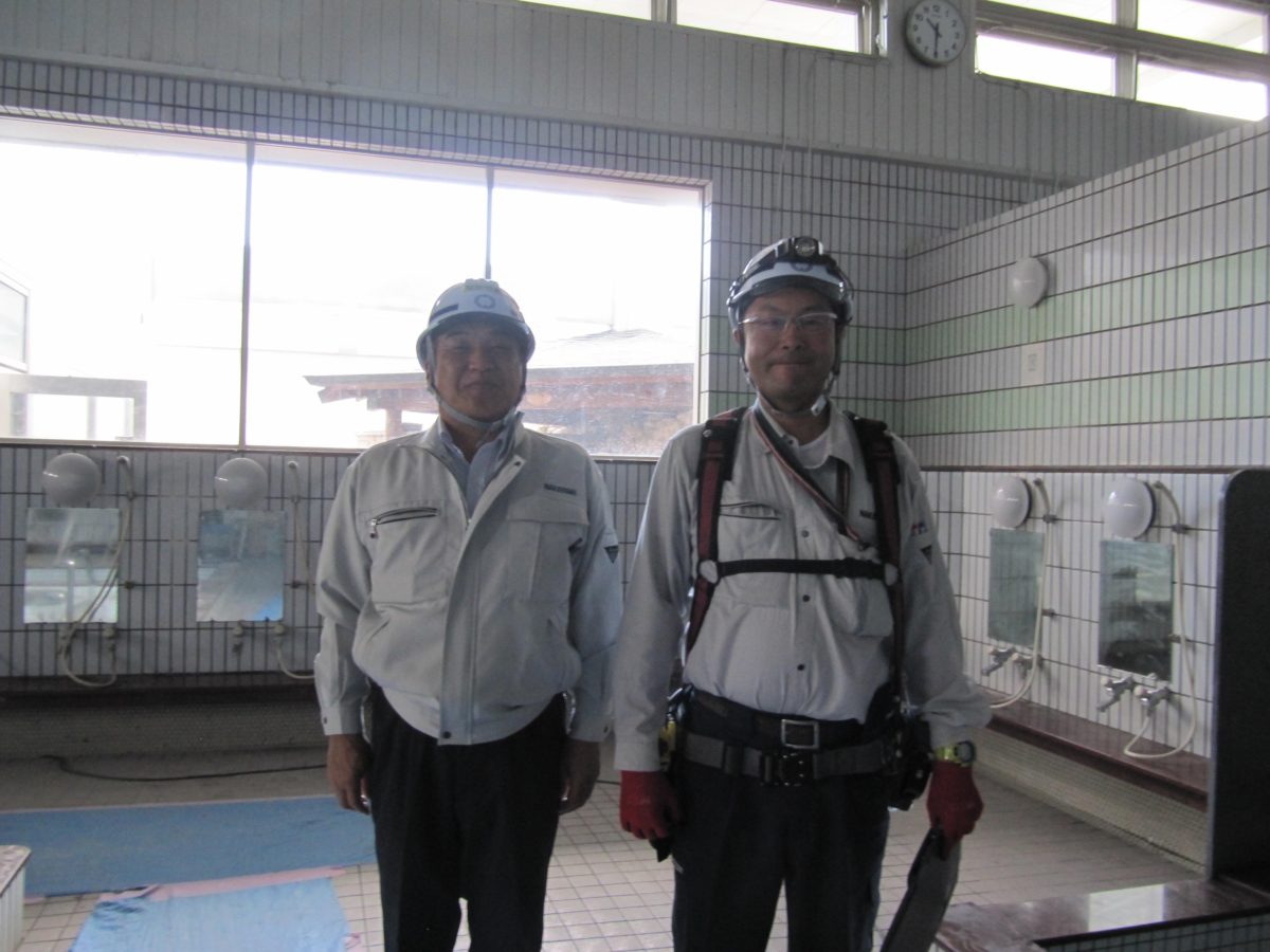 - 左から中山社長、佐藤係長(撮影場所:男湯の洗い場)