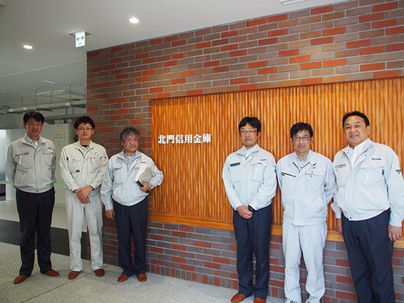 - 左から 三浦さん、川畑さん(笹木産業)、森下所長、田辺さん、黒田さん(田端本堂カンパニー)、中山社長