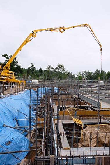 私たちが現場見学に訪れた際には、基礎工事が行われている最中でした。見学に訪れたのは20日の午前中でしたが、基礎にコンクリートを流し込む作業をしていました。今月末には基礎工事がほぼ終了する予定だとも話されていました。