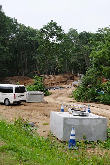 次に向かったのは、「倶知安ZOS造成」の現場です。場所は「Cハウス」の現場からそれほど遠くない、虻田郡倶知安町です。造成工事が終了した後には、分譲のログハウスが建設される予定です。