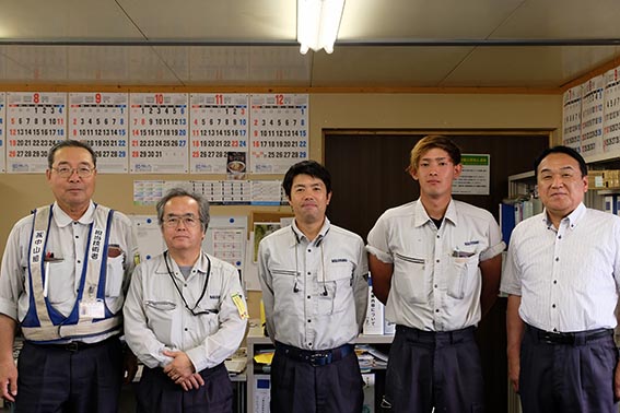 - 左から 栗田さん、高橋さん、三品さん、鈴木さん、社長