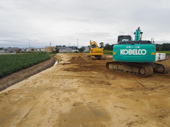 工事名称:石狩川改修工事の内 北村3区樋管下流地区攪拌土造成工事