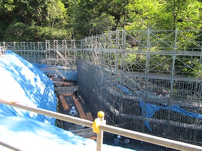 現場に伺ったときは、道路を造る際に土が盛りこぼれてしまわないように抑えるための擁壁を作っているところで、完成したらどのようになるのか楽しみです。