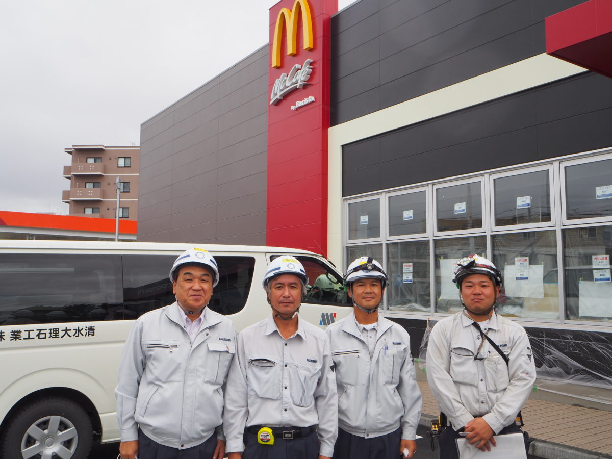 最初に訪問したのは「マクド南新川店新築」の現場です。こちらの現場では、マクドナルド南新川店の建て替えに伴い店舗を解体し、当社にて店舗の新築工事を行っています。