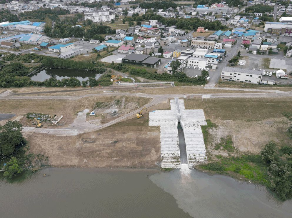 掘削工事のほかにも、北海道開発局の堤防除草コスト縮減を目的とした羊放牧による除草試験の協力として羊防護柵の資材を提供したり、周辺地域のヒグマ対策として草刈りを実施したりと地域貢献活動も行われています。