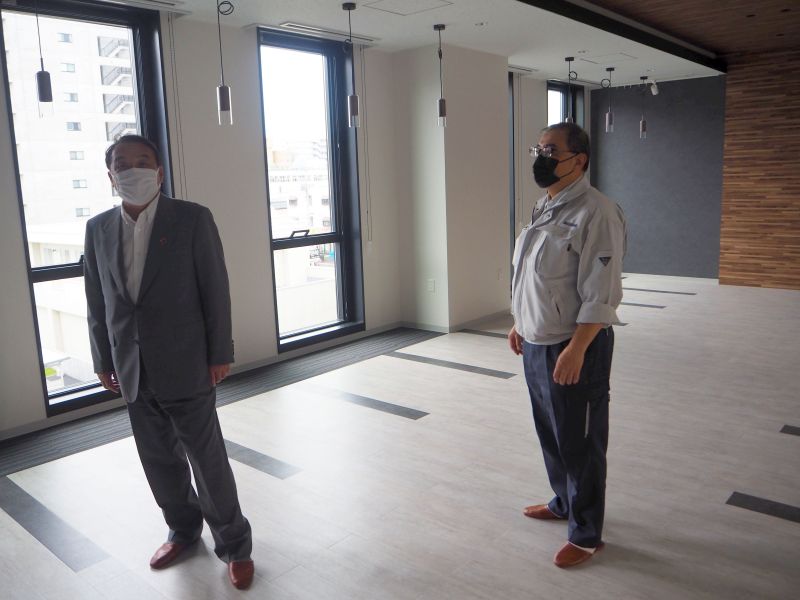 2021-10-22 令和3年9月22日、中山社長の現場視察が行われました。今回は「南14西9事務所ビル」の建築1現場を視察され、現場取材として同行させて頂きました。お忙しい中ご対応いただきありがとうございました。
