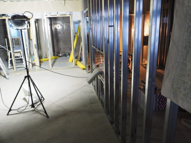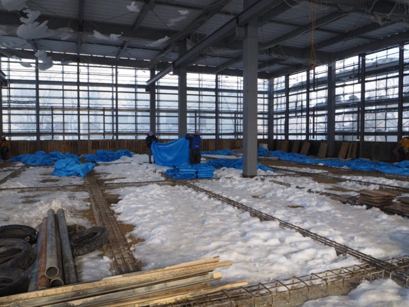 次に訪れた現場は、テラダ倉庫新築になります。こちらの現場は、延床面積は880㎡構造規模はS造地上1階建ての高さ約8メートル倉庫となっています。現場訪問時は、躯体工事が行われていました。
