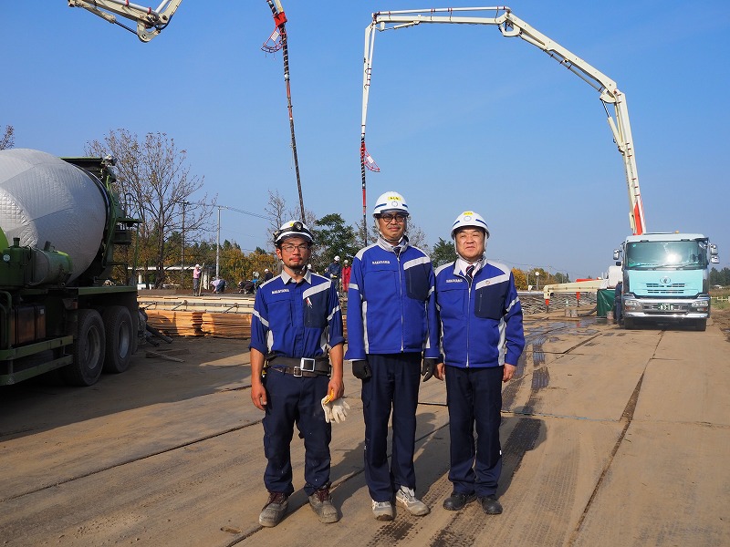 最後は、「N20ビル新築」の現場です。こちらの現場は、本社中山組より1㎞以内に位置します。1階はテナントとして貸し出す事務所、2.3階は中山組の社宅として建設されています。鉄筋コンクリート造3階建て全12戸となっており、2.3階の間取りは家族向けのため3LDKです。訪問時は、鉄筋を組みコンクリートを流し入れる型枠の建て込みが行われていました。現在の進捗度は20%程ですが、来年10月頃には完成し入居が可能になるようです。通学の時間帯を避けて資材搬入を行い、工事車両の出入りが頻繁にあるときは誘導員の方を配置するなど安全対策を第一に徹底して行われています。昨年度、こちらもまた高橋所長が手掛けた社員寮の建設に続き、事務所兼社宅の完成は社員にとってもすごく楽しみです。これから冬を迎えますが体調にも留意し無事に竣工を迎えていただきたいです。ご丁寧に対応いただきありがとうございました。
