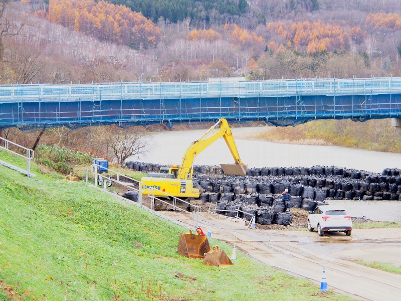 両側から締め切るため流速が上がることや降雨や雪の影響による増水、上部に掛かる橋との接触など注意しなければならない事も多く、安全管理に努めて施工したいとお話してくださいました。