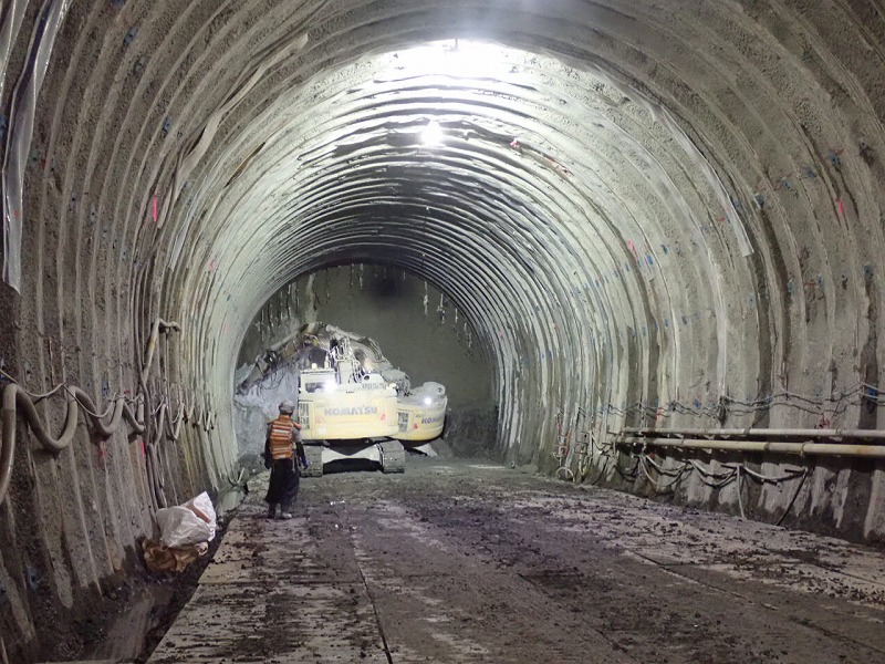 現場内は昨年来た時とは違いトンネル坑内の重機やダンプ車が稼働していてトンネル内に活気がありました。昨年は土砂崩落個所の対策工事により掘削工事は進んでおらず、地盤改良工(セメント系注入)の施工中だったことを思い出します。