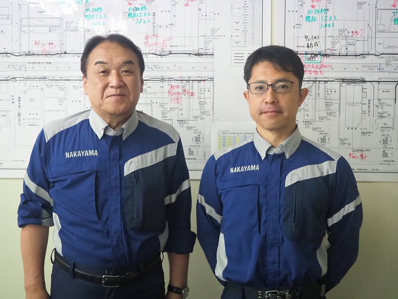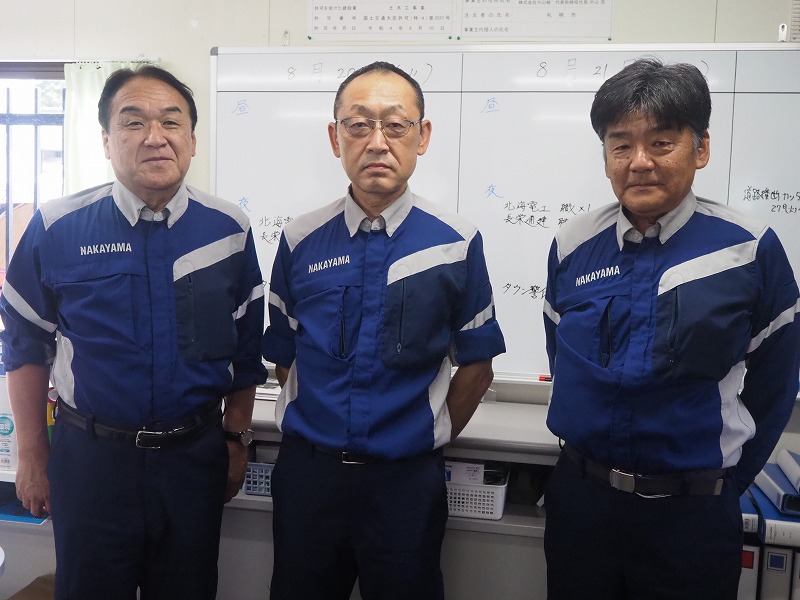 - 左から中山社長、現場代理人の對馬さん(大坪さんは夜勤のため昼間はお休みでした)