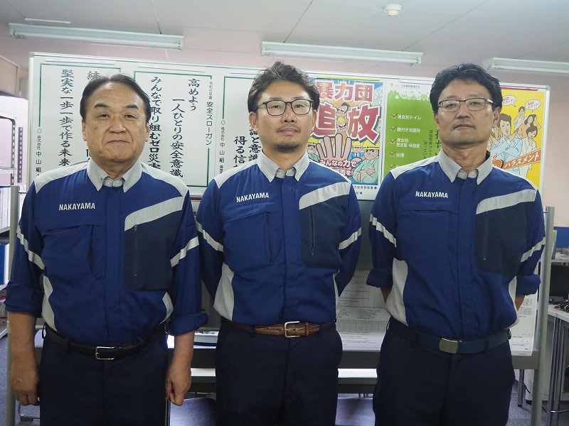 - 右から中山社長、村上さん、佐藤さん(平井さんは夜勤のため昼間はお休みでした)