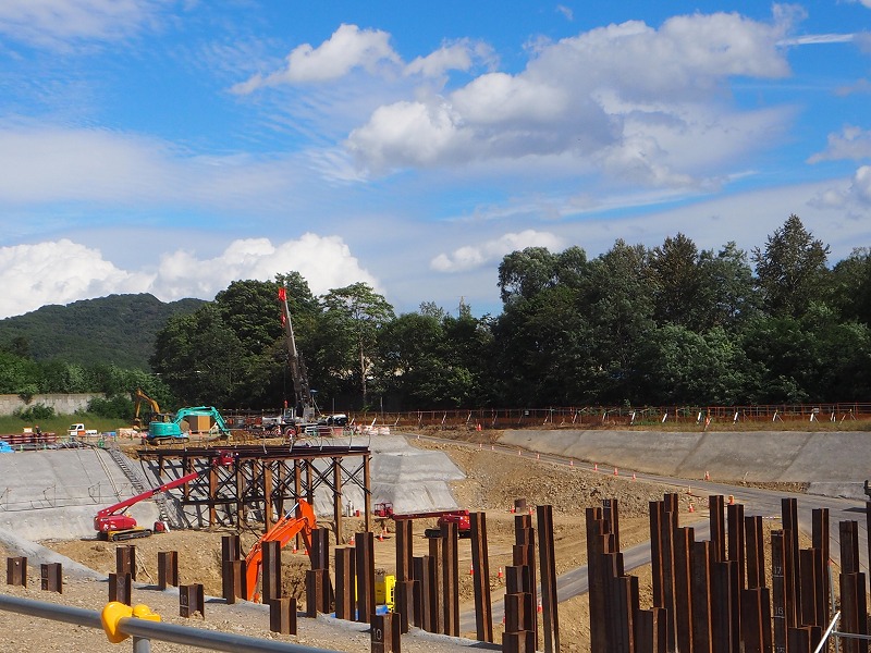 現在は、3つある内の2つ目の作業構台を建設中なのと、躯体を作るために掘削を行っており、ちょうど掘削深さの半分である10mほどを掘り進めているところです。