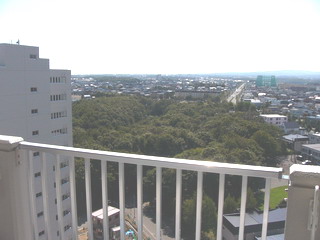 最上階である14階からはすばらしい眺望が望めます。近くには青葉中央公園(写真の森のような所です)がありますし、JR新さっぽろ駅からも近いと交通の便も最適です。