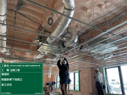 MENU 只今施工中ー施工事例 滝川営業所社屋移改築工事(建築工事) 施工種別:建築事業 事例名:滝川営業所社屋移改築工事(建築工事) 発注者:株式会社北海電工 施工者:中山・鈴木東建共同企業体 施工場所:滝川市泉町 担当者:瀨戸 規文、伊勢 昇 概要:構造・規模:鉄骨造・地上1階建 建築面積:1,584.9m² 延床面積:1,457.95m² 最高軒高さ:7.273m 掲載日: 2026年02月17日 進捗度: % 事務所 ウレタン吹付施工状況 R8.2.4 事務所 ウレタン吹付完了 R8.2.5 ウレタン吹付完了時 施主現場確認 R8.2.12 事務所 軽量鉄骨下地組立状況 R8.2.14 事務室 軽量鉄骨下地組立完了 R8.2.16 車庫・倉庫間 耐火間仕切壁ボード貼付け完了 R8.2.16 現場全景 R8.2.10 現場全景 R8.2.10 コメント: