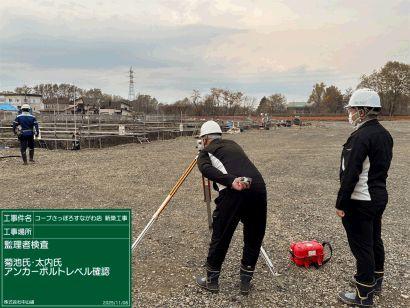 MENU 只今施工中ー施工事例 コープさっぽろすながわ店 新築工事 施工種別:建築事業 事例名:コープさっぽろすながわ店 新築工事 発注者:生活協同組合コープさっぽろ 施工者:株式会社中山組 施工場所:砂川市 担当者:田中 秀人、長谷川 魁、竹内 彩乃、佐藤 嵩泰 概要: 鉄骨造平屋建て(SM棟、物販1、物販2) 掲載日: 2025年11月18日 進捗度: % 現場全景 アンカーボルト設置状況監理者確認検査 アンカーボルト設置状況監理者確認検査 基礎A工区 梁筋圧接 基礎A工区 梁筋圧接部超音波外観検査 基礎B工区 梁筋圧接 コメント: