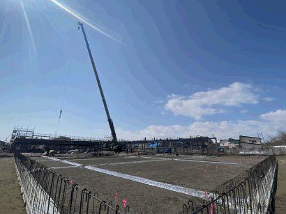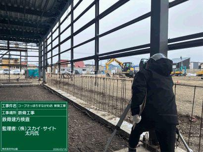 MENU 只今施工中ー施工事例 コープさっぽろすながわ店 新築工事 施工種別:建築事業 事例名:コープさっぽろすながわ店 新築工事 発注者:生活協同組合コープさっぽろ 施工者:株式会社中山組 施工場所:砂川市 担当者:田中 秀人、長谷川 魁、竹内 彩乃、佐藤 嵩泰 概要: 鉄骨造平屋建て(SM棟、物販1、物販2) 掲載日: 2026年03月31日 進捗度: % 物販1棟 鉄骨建方 物販1棟 鉄骨建方 SM棟 土間冷媒ピット部再掘削状況 SM棟 土間埋設配管状況 物販2棟 監理者試験杭立会 SM棟 鉄骨建入監理者検査 SM棟 屋上防水施工状況 物販2棟 掘削状況 物販2棟 掘削状況 コメント: