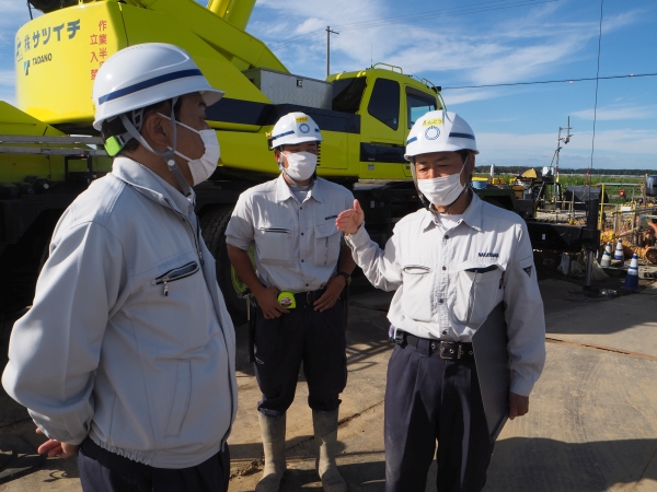 工事は順調に進んでいます。ですが、大掛かりな工事のため特に事故や災害などに気をつけて施工されるよう願っています。三品さんをはじめとした現場担当者の皆さんには、お忙しい中、総出で対応していただき、本当にありがとうございました。