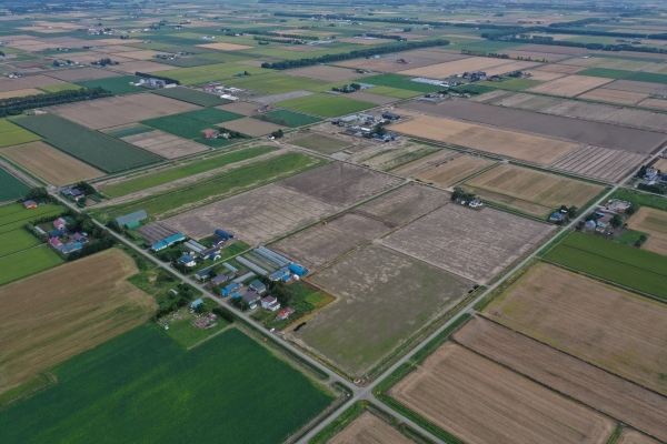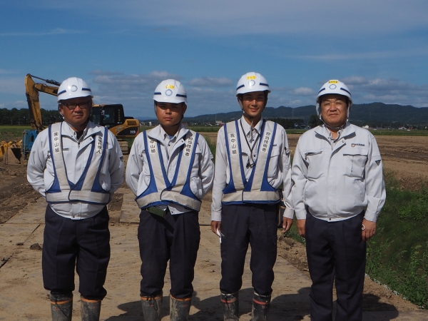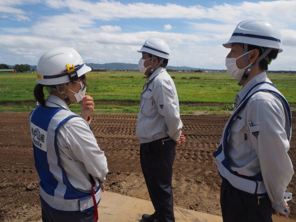 「長沼町新光東ほ場」の現場は、一つ前に訪問した「新光西ほ場」のすぐ近くにあり、遠くに現場事務所がお互い視認できるほどでした。