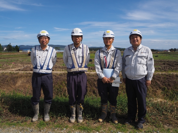 - 左から中山社長、山本さん、本間さん、遠藤所長、伊藤係長