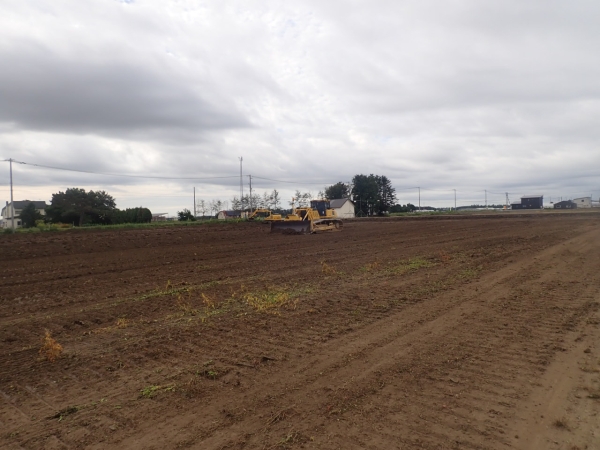 次に訪問したのは「長沼町新光西ほ場」の現場です。こちらの現場は、訪問時にはちょうど整地工が3分の2終わった状態で、今後は暗渠工に着手していくとのことでした。この夏は天候に恵まれない日が多く、なかなか現場を動かせないことも続いていたそうです。そのため、急いで作業されているとのことでした。