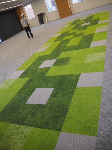最初に向かった現場は、北土建設社屋改築の現場です。市電通りに面しており、道路の拡幅に伴い旧社屋を解体し新社屋を建てています。10月末に建物を引渡し、11月に備品搬入や引越しを済ませるということで、竣工に向け仕上げ作業が行われました。仕上げ材は、カーペットの色や配置、間接照明や外観のデザイン等に設計者のこだわりが随所に見られました。来春には外構工事、駐車場工事が行われるとのことでした。これからも安全には留意して作業を進めていってほしいと思います。お忙しい中対応して頂いた現場の皆さんありがとうございました。
