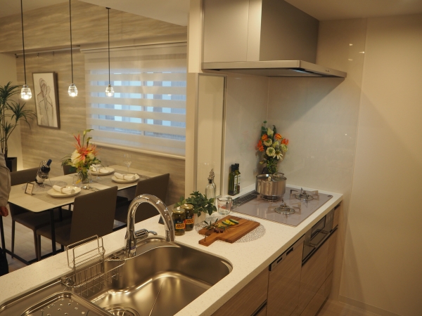 4つ目に向かった現場は、フィネス平岸になります。こちらの現場では、ウエスト棟が12階建44戸、イースト棟が13階建48戸の2棟建、計92戸の分譲マンションを施工しています。最寄りの平岸駅まで徒歩4分と利便性の高い場所にあります。訪問時には、共用部の仕上げ工事、外構工事、機械式駐車場の基礎工事を行っており、13階の1部屋を見学させて頂きました。