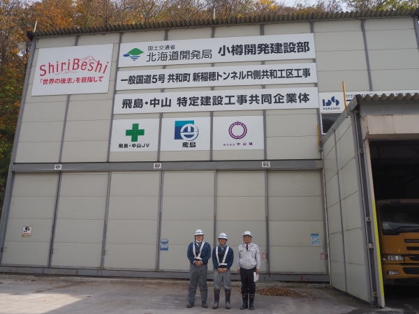 次に訪問したのは、新稲穂トンネルR共和工区の現場です。飛島建設株式会社との共同企業体で、トンネルの新設及び道路改良工事を行う工事です。