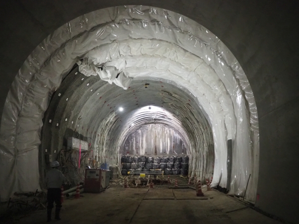 平成27年からの長期間の現場ですが工事は終盤に入っており、防水工はほぼ終了し、覆工が残り270mほどというところまで進んでいて、予定よりは遅れていますが工事は着実に進めることができているとのことでした。現場担当の川津さんはこの工事への配属の6年間で本当にいろいろなことを経験したとお話されていました。竣功まで安全に作業されることを願っています。丁寧なご対応ありがとうございました。